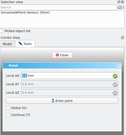 should read 0 mm for Local ΔX, Local ΔY and Local ΔZ