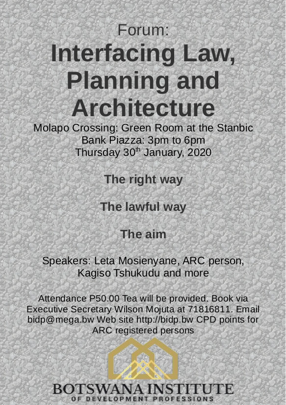 Law, Planning and Architecture:A forum discussion held at Molapo Crossing, Gaborone |