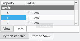 the Combo View>Model>Data tab then set X to 0 and Y to 0