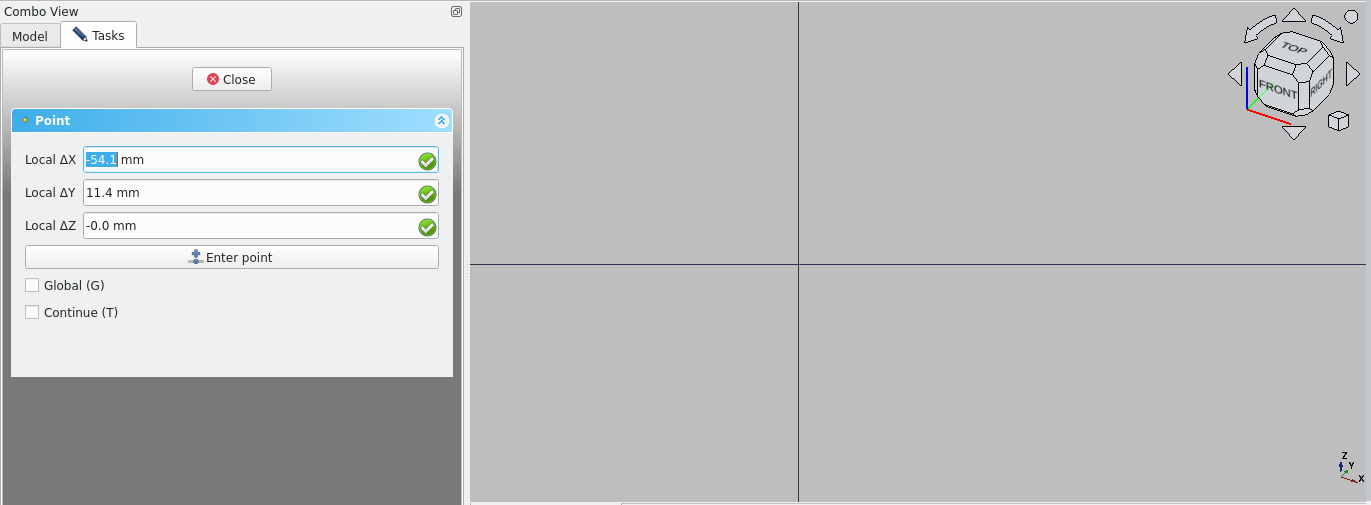 Local ΔX enter 0 mm, then press the Tab key, For Local ΔY enter