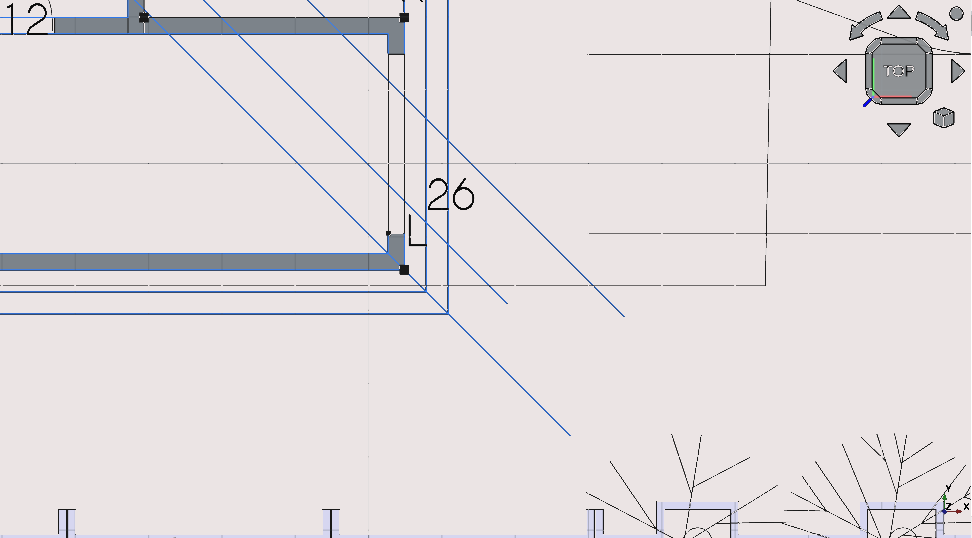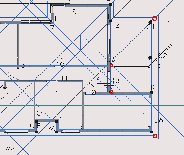 Use the trim tool to extend the 45° lines beyond the boundaries of the construction roofline See the section on 'using the trim tool' (holding Ctrl will snap the lines being trimmed to Snap Points; Pressing ‘Alt' inverts the trim or extensions direction). The procedure for extending a line is as follows;