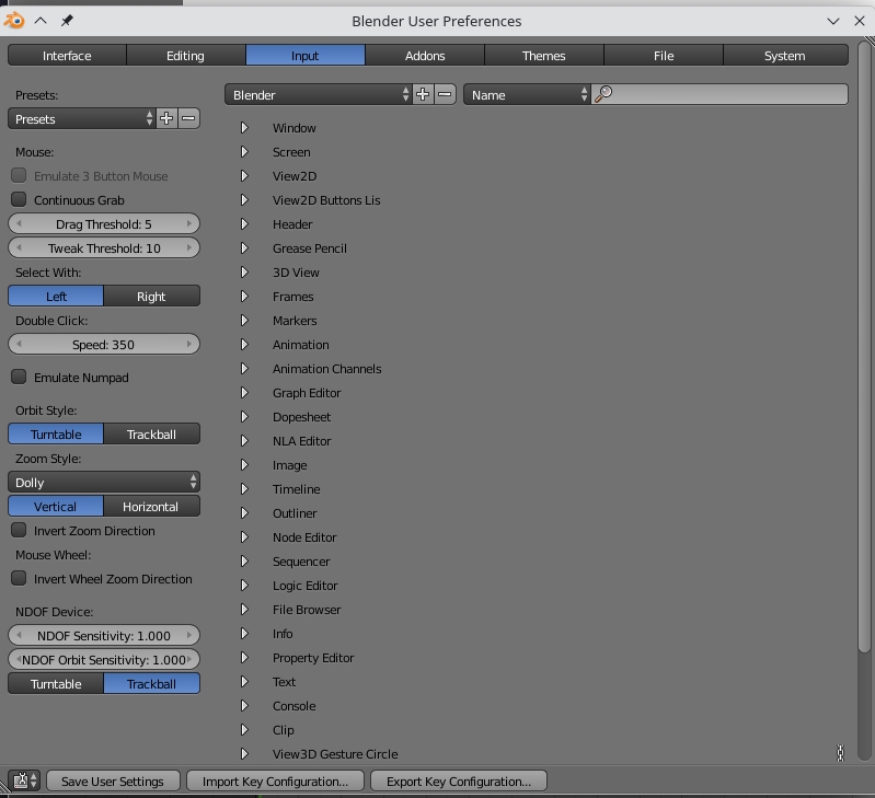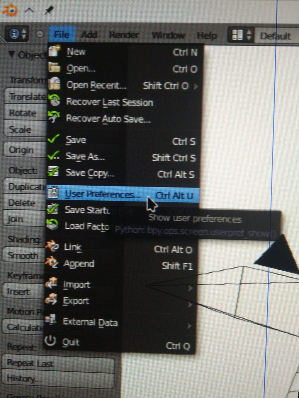 To carry out basic editing, select >File>User Preferences (at top left of default start-up file).